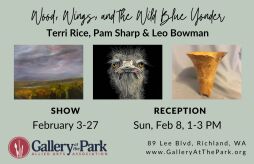 Visit us at Gallery at the Park on February 8th (1-3pm) for the artists reception for local artists Terri Rice, Pam Sharp, and Leo Bowman!