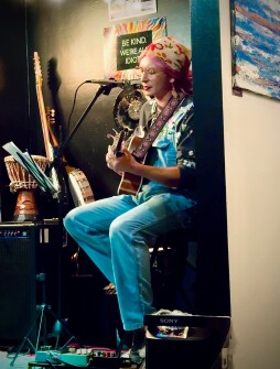 When they’re not pulling heartstrings with a single voice, Callisto plays an integral part in the local grunge-punk trio Trotting Roux, channeling the same emotional force that drives their songwriting into guttural screams and high-energy performances, deeply contrasting their solo work. That same passion carries into their efforts in the Tri-Cities music community, where they host weekly open mics at the Emerald of Siam and organize punk and folk shows at local venues and DIY spaces.