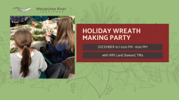Join Wenatchee River Institute this winter season to create your own holiday wreath to take home. Come prepared to experiment with a variety of foraged materials such as lichens, evergreen branches, dried flower stems, pinecones, berries, dried leaves, and citrus slices. All the materials we will use have been gathered around WRI's campus and surrounding areas by the Land Steward, with all of the wreath bases being handmade from ponderosa pine and/or the weeping willow at the entrance to WRI! You can expect a fun gathering learning from WRI's Land Steward to make an artistic, nature inspired, compostable wreath.