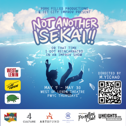 Not Another Isekai!! Or That Time I Got Reincarnated in an Improv Show is a live fantasy comedy where a real guest is pulled into a magical world onstage. Each night features a different special guest, including journalist Lori Matsukawa, Magic: The Gathering designer Gavin Verhey, and performers from across the Seattle and Portland improv scene. The cast builds the story in real time, creating a fast-moving adventure filled with villains, quests, and unexpected laughs.