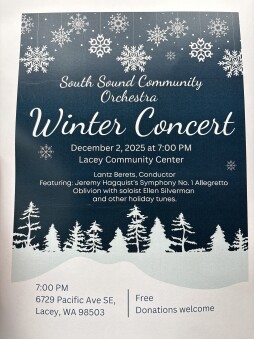 Community orchestra concert featuring new music from local composer, an oboe solo and holiday tunes
