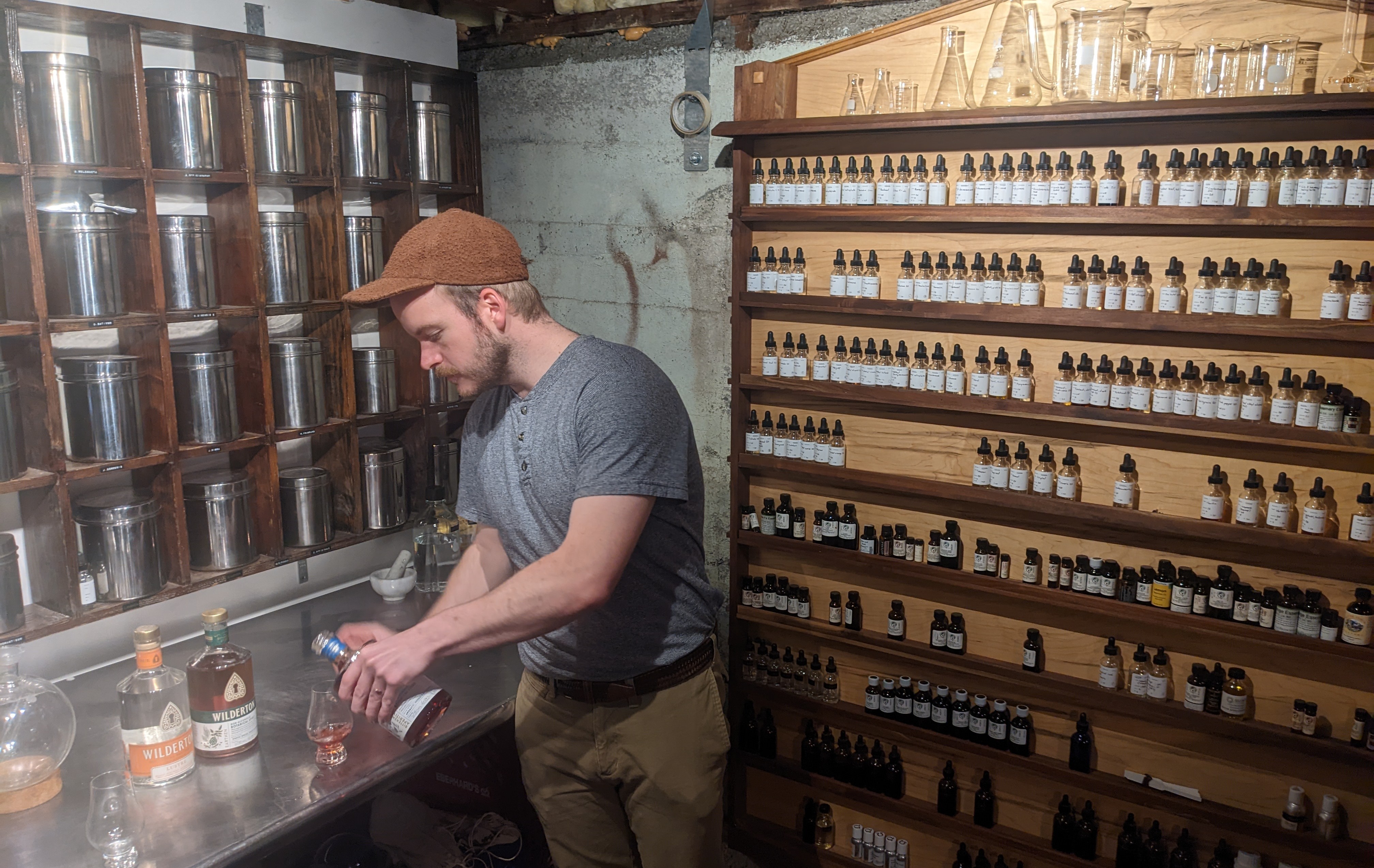 Founding Distiller of Wilderton, Seth O-Malley, leads me down the stairs of the basement brewery in southeast Portland, where he crafts what he calls, "botanical spirits."